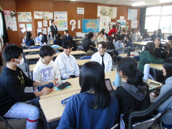 11月11日(第1回)と12月9日(第2回)に、県内の大学からそれぞれ約20名の留学生が来校し、国際教養科2年生グローバル探究の授業と、全校生徒希望者を対象とした授業後の交流会に参加しました。